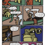 As the two Slugfolk bicker, Brudil looks on at Pleht, worried. Pleht, for his part, is looking at the pot that landed in his lap. Brudil reaches a decision, and cringes.